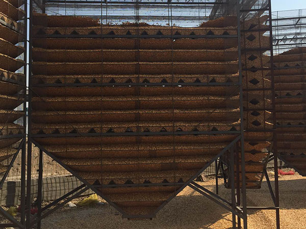 糧食風(fēng)干倉變平面曬為立體晾曬,充分利用自然空間 玉米風(fēng)干倉廠家,極大的節(jié)省占地面積。在自然晾曬中糧食全部離開了地面,受雨雪天氣影響極小,而且糧食品質(zhì)不會(huì)受到污染及霉變。同時(shí)利用谷類作物濕漲干縮的原理自動(dòng)翻糧,節(jié)省了人工翻動(dòng),減少了原糧的破碎率;糧食風(fēng)干倉在常溫下自然風(fēng)干,保證了原糧的自然營(yíng)養(yǎng)成分;時(shí)間效率是地面晾曬糧食的2-4倍。每噸糧食整曬費(fèi)與地面晾曬相比節(jié)省人工支出30元左右。